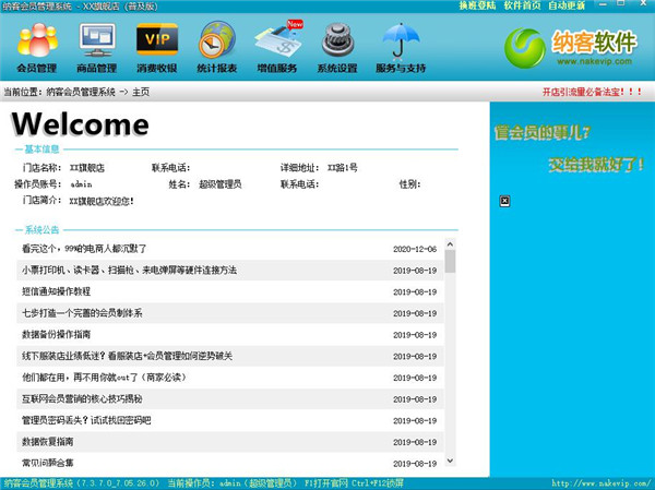 1、纳客会员管理系统需要安装客户端么?纳客会员管理系统采用现金的BS模式架构,无需安装任何客户端软件,通过浏览器,能上网即可使用纳客连锁系统,方便快捷。