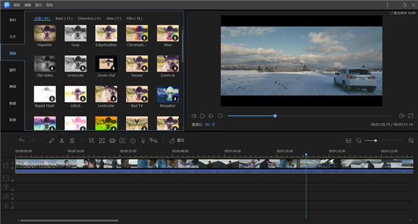 易我剪辑大师有大量视频滤镜和叠加效果,在视频中置入快速效果,提升视频可看性。