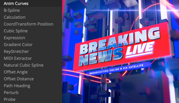 动画曲线修改器可让您轻松拉伸或挤压关键帧,并添加反弹、镜像或循环动画,这些动画会在合成持续时间发生变化时自动更改。当您将 Fusion 标题或效果拖放到时间线上并更改其持续时间时,动画会相应调整!