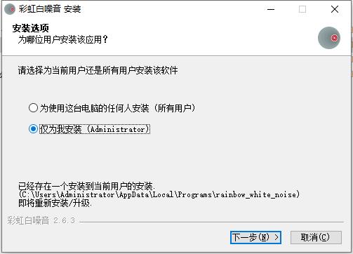 安装向导默认设置的软件默认安装路径为C:\Users\Administrator\AppData\Local\Programs\rainbow_white_noise