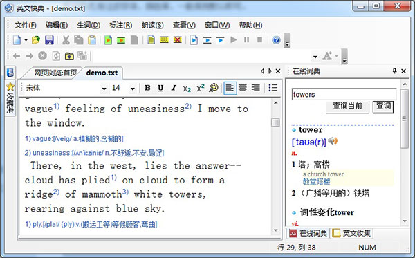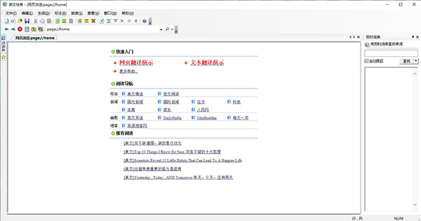 1、基本工具栏:包含了生词分析,生词标注,英文朗读等常用功能2、浏览器工具栏:浏览网页相关的功能,可以在地址栏直接输入网址打开网页。
