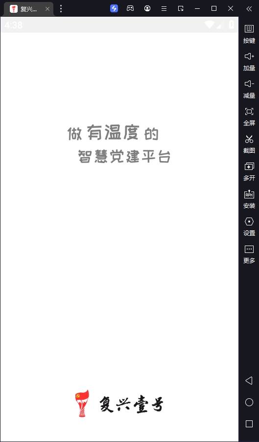 复兴壹号电脑版是借助安卓模拟器运行在pc端的一款智慧党建应用。它的上线不仅方便了日常党建工作的开展,提升了基层党组织的活力,也让基层党建工作更加活跃和丰富起来。复兴壹号内分为党建圈、活动专区、党费交纳、文化馆、复兴头条等功能板块,能基本满足基层党建业务工作需要。如缴纳党费、了解党政信息、参与活动等。