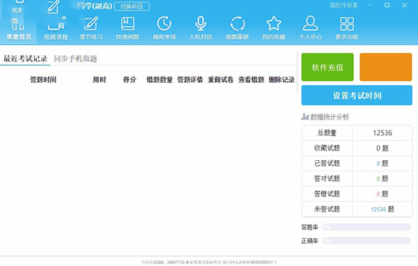 5、考试记录,在软件显示开考试相关的信息,查看错题数量、答题详情、重做试卷、查看错题、删除记录。