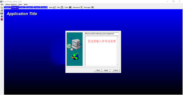 选择Screen2, 然后在中间对话框中输入许可证信息(可略)
