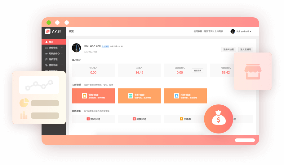 学员统计、收入统计、分销统计等多项数据分析,实时监测运营效果
