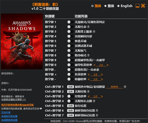 刺客信条影修改器功能介绍