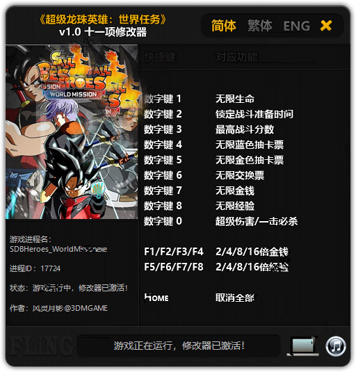 超级龙珠英雄世界任务修改器功能说明
