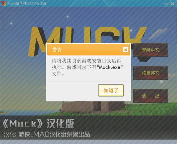 注意:在安装中文补丁之前,请各位玩家首先安装好游戏,下载和安装汉化时,请关闭一切杀软以及360!1、在本站下载解压,得到Muck汉化补丁;