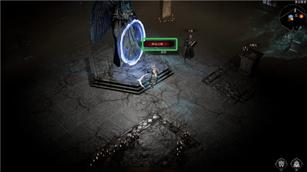 1、进入游戏中,在篝火出向后走,来到命运之镜,点击进入关卡。