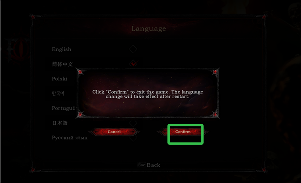 4、点击【Confirm】立即重启游戏,再次打开语言就切换好了。