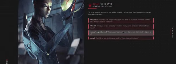 在地球的最后几天,ZEPHON和Acrin(由Anchorite代表)准备进行最后的对抗,每个人都部署了强大的泰坦-三个,加上他们的盟友。是的,即使他们在那之前就被消灭了。每个玩家(人类或AI)都可以选择加入两个势力中的哪一个(这需要非敌对状态),打破任何现有的条约加入两个大型联盟。