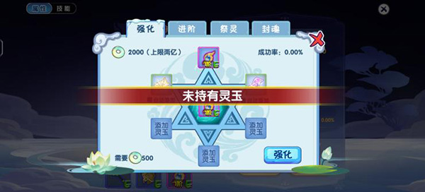 (3)祭灵,跟问仙类似,勾选想要提升的属性进行祭灵,每次消耗一定数量的“灵质”(初始为500一次),每多勾选一个词条进行提升,消耗的“灵质”数量就会相应增加。