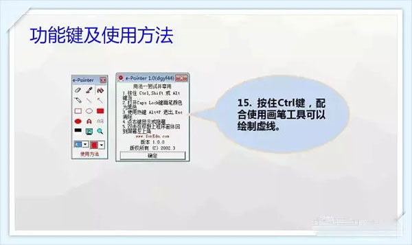 4、画图时按住Ctrl键可以使对应的画图工具画出虚线、正方形、圆、准确定位点选擦除、打出白色背景的文字等;