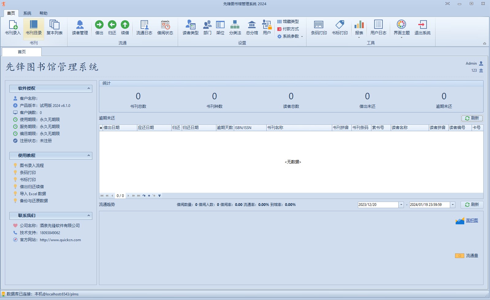 v6.0.0版本1. 系统版本升级为:先锋图书馆管理系统 2024;
