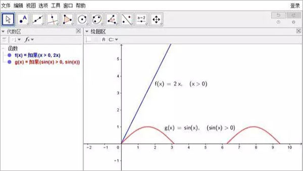 不同视区提供各自适用的工具列,上面包含了特定工具、指令,以及内建函数与运算子,让您可以运用不同表征的数学物件,来创建动态结构。