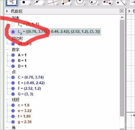 5、按下enter键,可以在代数区看到这些对象构成的新系列L2.;