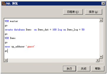 12、预览数据库Demo的创建信息。 点 预览 按钮可以查看创建数据库Demo的命令语句。