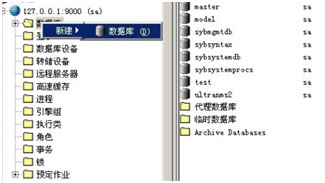 1、在上面的步骤中初始化了两个设备:Demo_dat和Demo_log,下面演示在这两个设备上面新建数据库Demo。在Sybase Central中左边文件夹列表中选中数据库,点右键,选择 新建 > 数据库