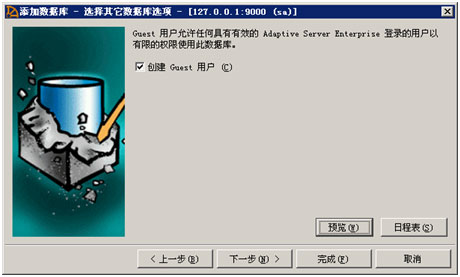 10、选中创建Guest 用户选项,表示为数据库Demo添加用户:guest。这样其他非授权用户可以以guest的名义访问用户数据库Demo,并执行guest拥有权限的操作。点 下一步,继续