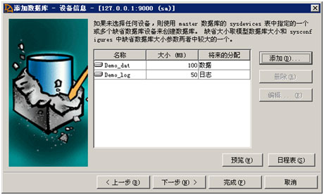 8、如上图示,为数据库Demo分配好了数据设备和日志设备。 点 下一步 按钮