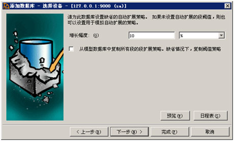 11、数据库的自动增长配置可以通过job scheduler来完成。此时,不配置数据库Demo的自动增长。点下一步,继续