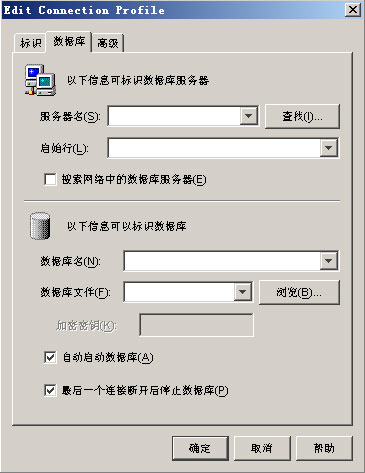 第二步:配置服务器名称 和 数据库名称和上图所示,服务器名和数据库名都不指定。