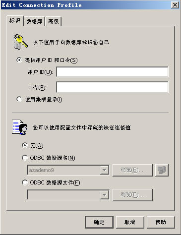 一、用sybase central连接Sybase IQ 数据库教程第一步:配置用户名和密码, OBC数据库源,用户名、密码和数据源都不指定。
