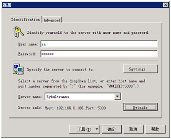 5、然后,在登录信息窗口中,点确定,连接上Sybultranms数据库。