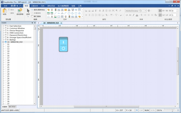 EasyBuilderd是用来配置MT8000系列触摸屏的元件的综合设计软件,或者称为组态软件(简称EB500)。按下这个按钮可以进入EB500组态软件的编辑画面。
