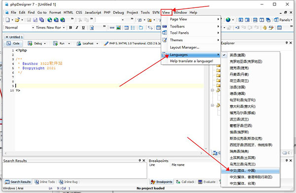 phpDesigner中文设置方法