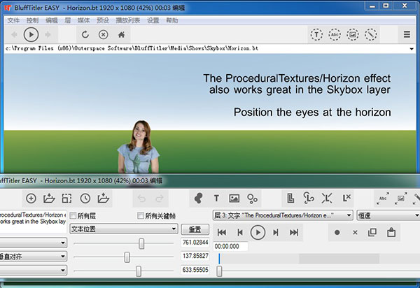 6、字幕软件BluffTitler对熟悉相近软件的人来说,很容易上手,然而,一些初学者还是感到茫然。不过,不用担心,多用几次就熟悉了。7、多语言,总计34种语言,当然包括中文。