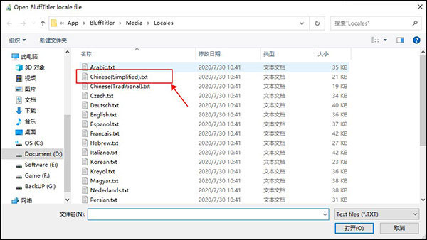 4、这里选择中文语言:Chinese(Simplified).txt,点击OK;