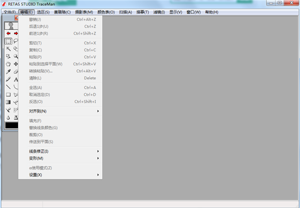 4、编辑包括了剪切、粘贴、转换粘贴、取消全部、转换选区、对齐到、线修正等;