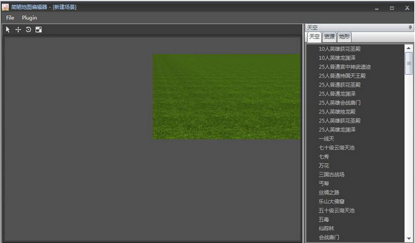 3、使用“确定”按钮创建地形,在界面右侧可以看到地形编辑器的功能分类,可以设置天空(背景卷轴)、摆放资源、修改地形。