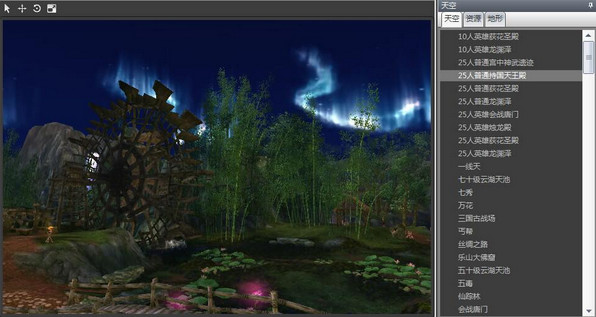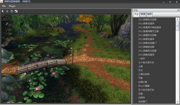 3、双击选中的地图载入地图编辑器。在界面右侧可以看到地形编辑器的功能分类,可以设置天空(背景卷轴)、摆放资源、修改地形。