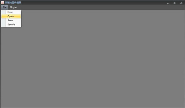 2、成功开启后,会显示地图编辑器界面,目前只有文件菜单可用,有新建地图、打开地图、保存地图的功能。