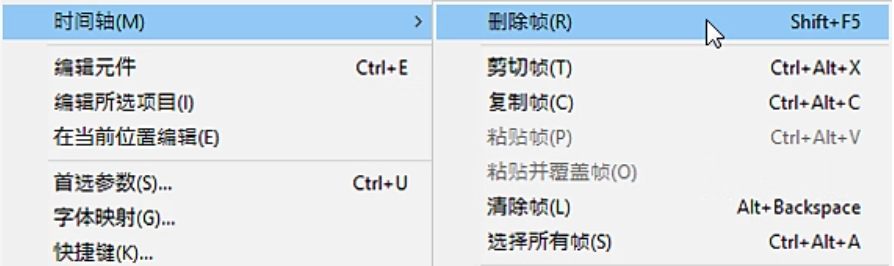 选择帧或序列并选择“编辑”>“时间轴”>“删除帧”,或者右键单击 (Windows) 或按住 Ctrl 再单击 (Macintosh) 帧或序列,从上下文菜单中选择“删除帧”。