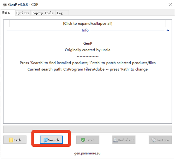 8、打开之后我们可以看到这个界面,点击下方的【Search】,之后等待一会。