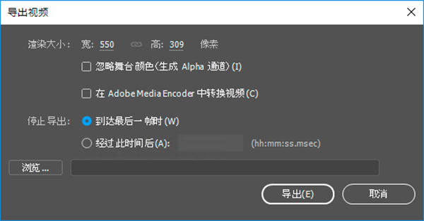 ⑤停止导出:指定 Animate 何时终止导出。