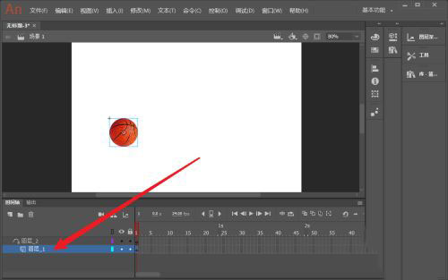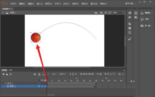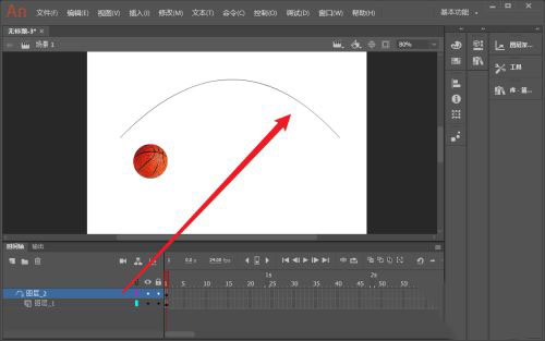 4、把篮球所在层拖动到引导线层下。成为被引导层。