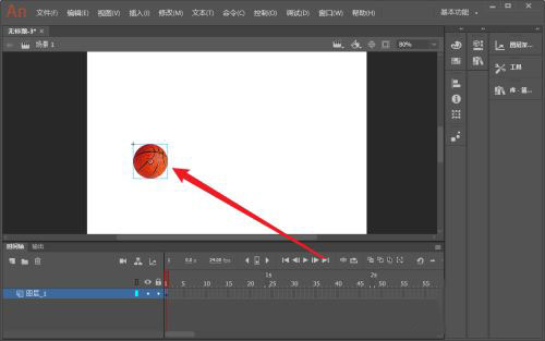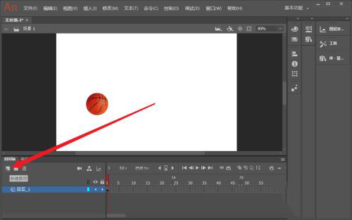 1、在Animate场景中新建一个篮球的图形元件。
