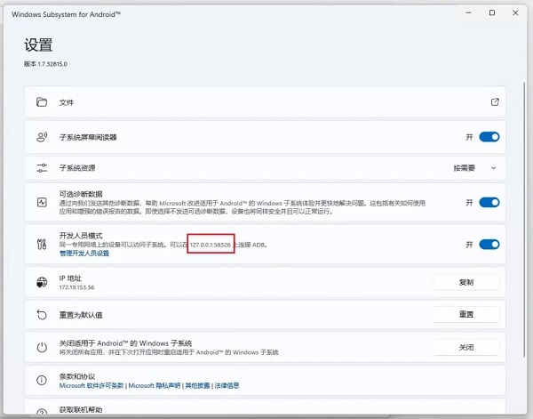 如果触摸输入不工作,请确保子系统屏幕阅读器被关闭。欲了解更多信息,请参见微软支持。Android 的 Windows 子系统的可访问性。