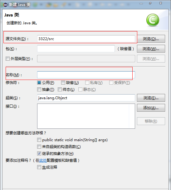 4.这里选择你刚刚创建的项目,以及类名,注意类名最好为字母。