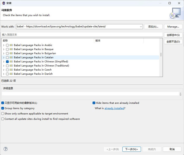 name可以随便填写,Location填写汉化包的下载地址https://download.eclipse.org/technology/babel/update-site/latest/