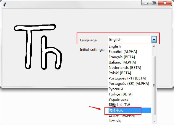 5、安装之后打开软件,在Language的下列中选择简体中文,点击Let's go进入软件;
