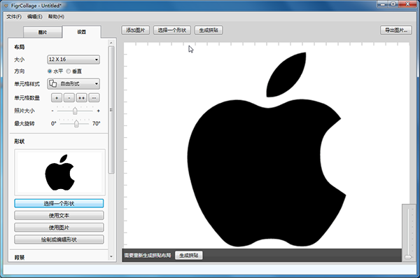 1、FigrCollage使用简单,三个步骤就可以拼接新的图片2、可以拼接菱形、五角星、脚印等形状