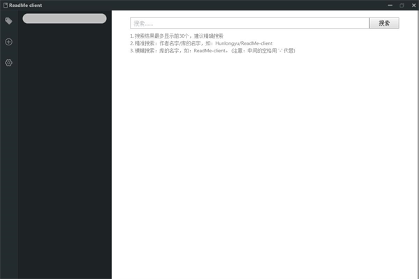 Readme client是一款专门为开发人员打造的编程开发软件,本款软件一般是配合Github使用,作为Github辅助插件,本款软件可以很好的帮助程序员轻松查找项目的开发文档,并且可以帮助程序员快速收集,整理,分类项目的开发文档。因为Readme client的搜索结果最多显示前30个,所以建议程序员们精确搜索,而且它界面简洁清晰,操作简单流畅。