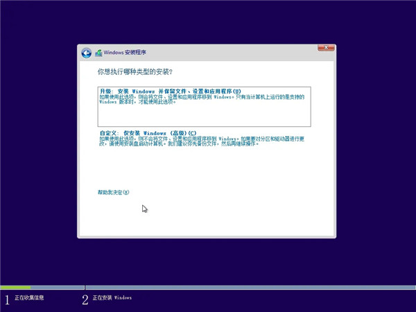 5、选择安装类型,Windows的安装自始以来包括全新安装和升级安装两种模式