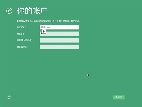 10、设置用户名、密码、重新输入密码、密码提示(在这里,密码可以为空)。
