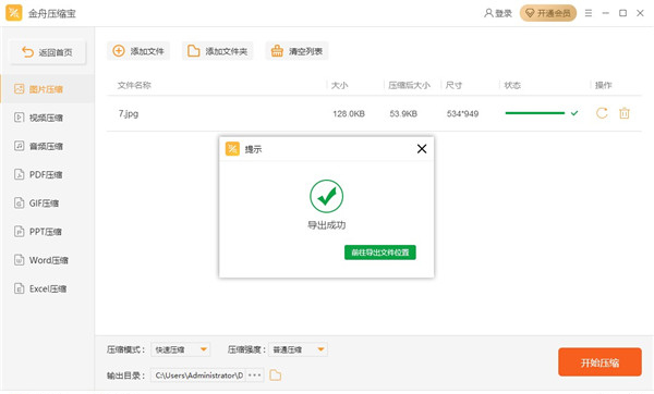 3、点击右下角开始压缩,稍等片刻即可压缩完成,点击前往导出位置即可查看压缩后的图片